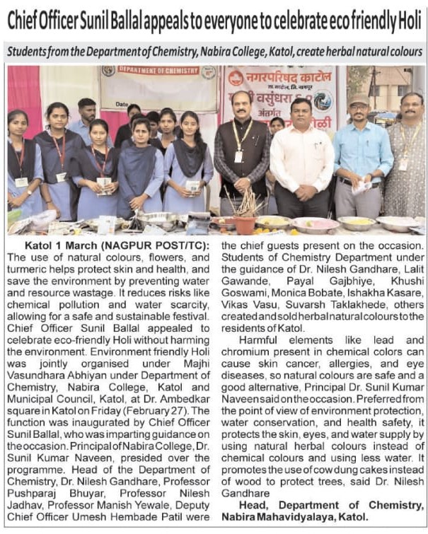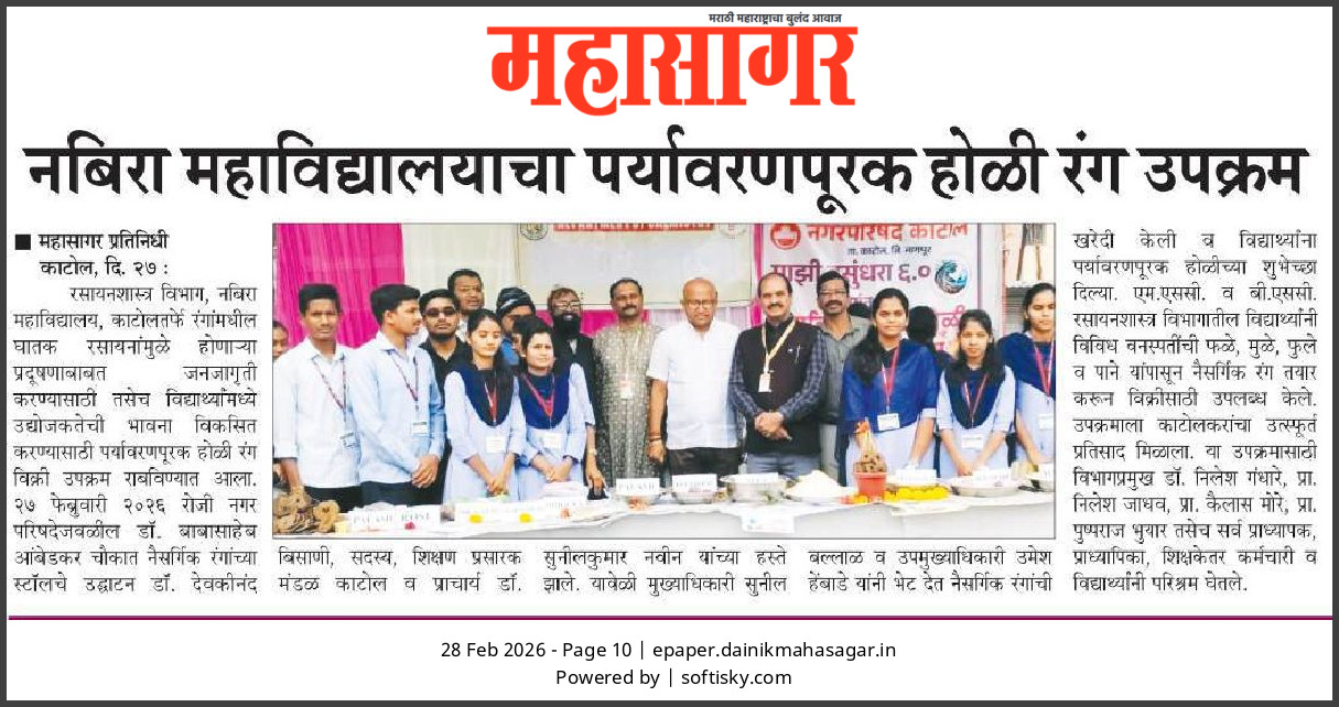 Nabira Mahavidyalaya, Katol Nabira College Campus, Dhantoli, Katol. District: Nagpur, Maharashtra 441302.