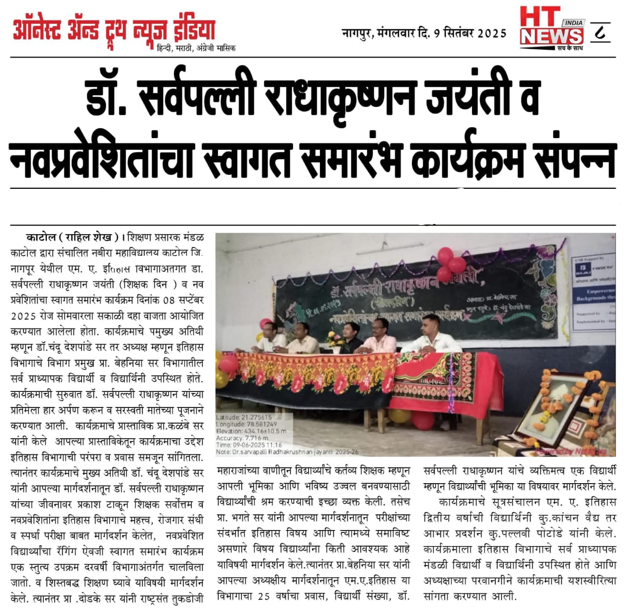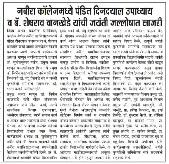 Nabira Mahavidyalaya, Katol Nabira College Campus, Dhantoli, Katol. District: Nagpur, Maharashtra 441302.
